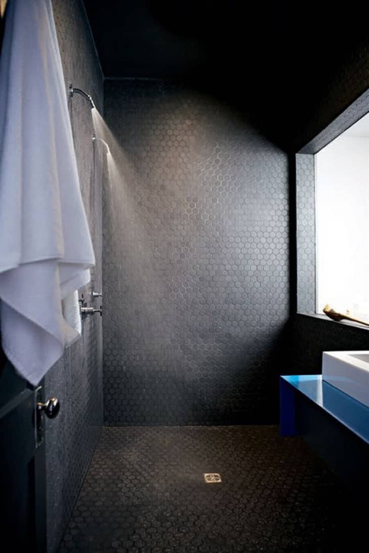 DIY midcentury modern black matte hexagon tile black grout bathroom Gray Floor Tile With Black Grout black grout isn’t an option that will suit every style of gray tile, although it can be used for both light and dark grays. what color grout should you use with gray tile? The powerful contrast between black grout and gray tiles lends a dynamic and visually striking. You can also choose cream. There are many grout color. Gray Floor Tile With Black Grout.